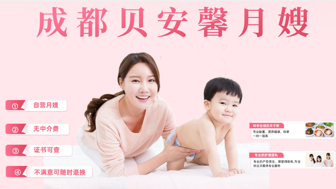 一位優(yōu)秀的月嫂不僅是寶寶的守護者,更是新手爸媽的育兒導師,專業(yè)的月嫂是家庭的得力助手,那么面對如今成都市場上眾多的月嫂機構,該選擇哪家月嫂呢?小編推薦成都貝安馨月嫂公司,原因如下: