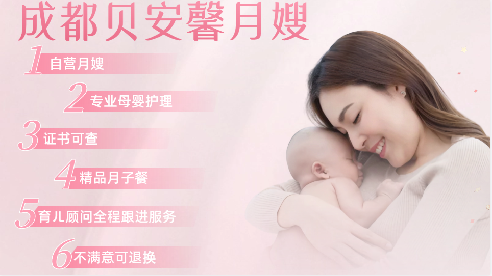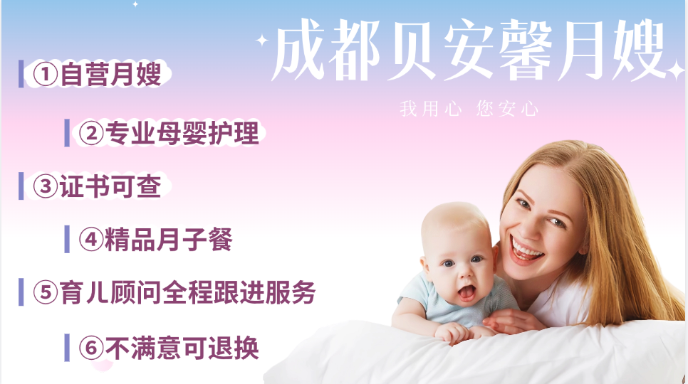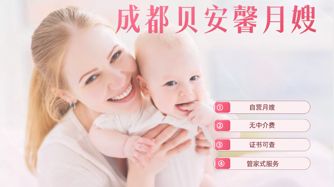 在成都找專業(yè)的月嫂公司還是比較推薦在市區(qū)里找,因為那里匯聚了眾多優(yōu)質服務提供商。成都貝安馨月嫂公司便是其中的一家,專業(yè)的月嫂服務值得您的信賴。關于貝安馨月嫂公司的優(yōu)點如下: